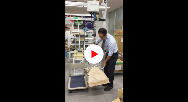 紙袋の搬送・投入作業を楽に!電動バランサ「ムーンリフタ」