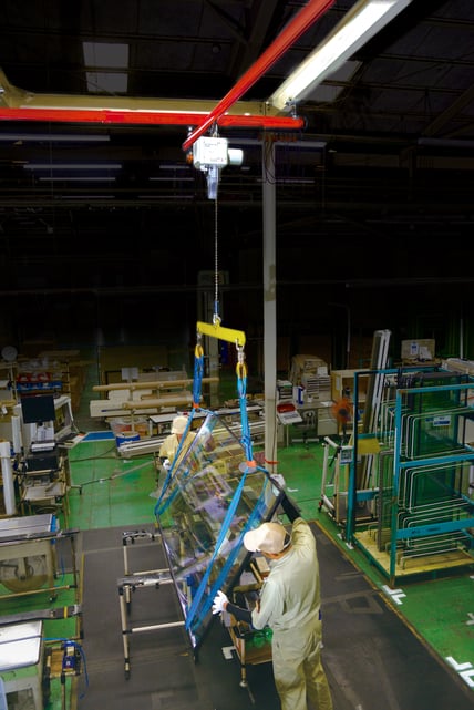 실제로 "정밀하고" "부드럽게" 접지시키는 제어를 이용해 대형 유리창을 반송하고 있는 고객을 소개합니다.