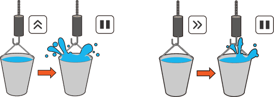 如果用天車等方式搬運水桶,則桶內的水會很容易灑出來。這是因為無法控制初始速度和減速度。