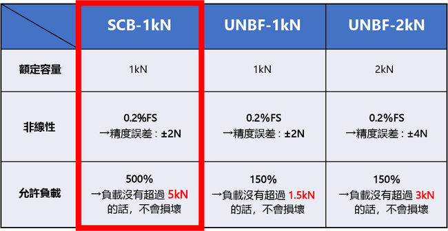 總而言之,SCB-1kN和UNBF-2kN相對比,SCB-1kN的精度要優於UNBF-2kN,而且比UNBF-2kN更難損壞。