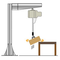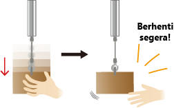 Jika workpiece ditempatkan dalam posisi yang tidak sesuai setelah menggunakan Moon Lifter dan workpiece cenderung terjatuh, Moon Lifter akan mendeteksi tarikan tiba-tiba pada rantai dan menghentikan pemberian rantai untuk mencegah jatuhnya workpiece.