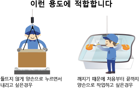 Moon Lifter는 리모콘 버튼 조작으로도 워크 승강을 할 수 있는데, 이때 항상 힘을 검출하고 있어 규정 부하 이상의 힘은 발생시키지 않기 때문에 안전합니다.
