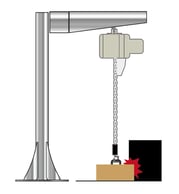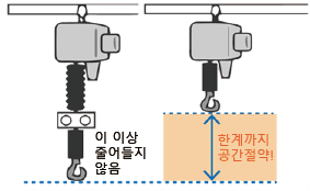Moon Lifter에서의 작업 후 워크를 놓은 위치가 불안정하여 워크가 떨어지려고 할 경우, Moon Lifter는 체인이 갑자기 당겨지는 것을 검출하여 체인의 돌출을 멈추고 워크의 낙하를 방지합니다.