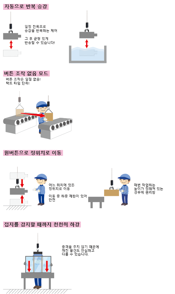 매다는 순간 워크의 무게를 자동으로 감지하여 어시스트 중량을 조정합니다.