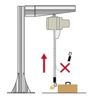 워크를 어시스트(밸런스)하고 있을 때 후크가 빠지면 일반 발란스사에서는 후크가 반동으로 튀어 올라 위험합니다. Moon Lifter는 체인이 갑자기 느슨해진 것을 검출하여 체인감기를 멈추고 후크가 튀어 오르는 것을 방지합니다.