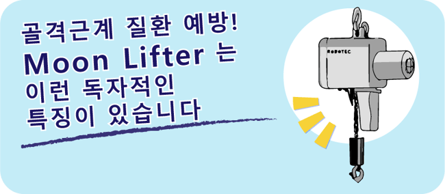 전동 밸런서 'Moon Lifter'는 매달아 놓은 워크를 마치 무중력처럼 가벼운 힘으로 다룰 수 있는 어시스트 장치입니다.