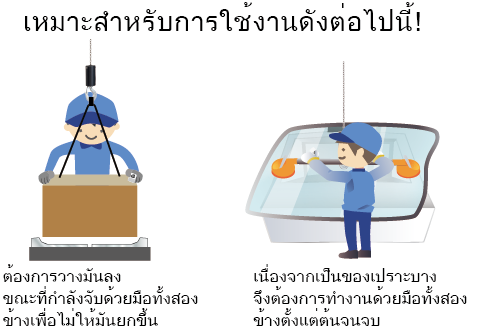 ไม่จำเป็นต้องใช้ปุ่มใดๆ และความเร็วในการเคลื่อนที่สามารถปรับได้ตามปริมาณแรงที่ใช้กับชิ้นงานที่จับด้วยมือทั้งสองข้าง ทำให้ทุกคนใช้งานได้อย่างง่าย