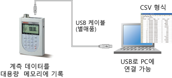 USB 케이블로 PC에 데이터를 넣을 수 있습니다.