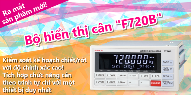 Sản phẩm mới ra mắt “F720B” là bộ hiển thị cân đa dụng, được trang bị chức năng chiết/rót định lượng giúp kiểm soát quá trình cân chiết/rót với độ chính xác cao. Ngoài ra, thiết bị còn tích hợp chức năng cân theo trình tự — một tính năng không thể thiếu đối với các hệ thống cân dạng phễu hoặc máy đóng gói. Có thể tích hợp các giao diện như EtherNet/IP, CC-Link, xuất BCD, RS-232C, RS-485, bộ chuyển đổi D/A và nhiều loại khác — cho phép kết nối linh hoạt với PLC và các thiết bị ngoại vi khác.