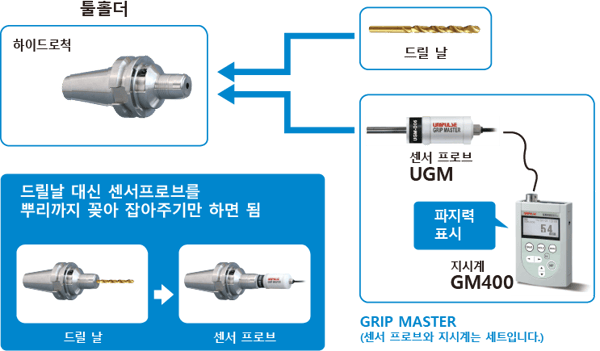 GRIP MASTER는 하이드로 척의 파지력을 측정하여 공작기계의 일상 점검을 돕습니다.