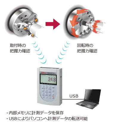 <ワイヤレスなので回転中でも測定OK!加工時に近い状態で測定できる!>