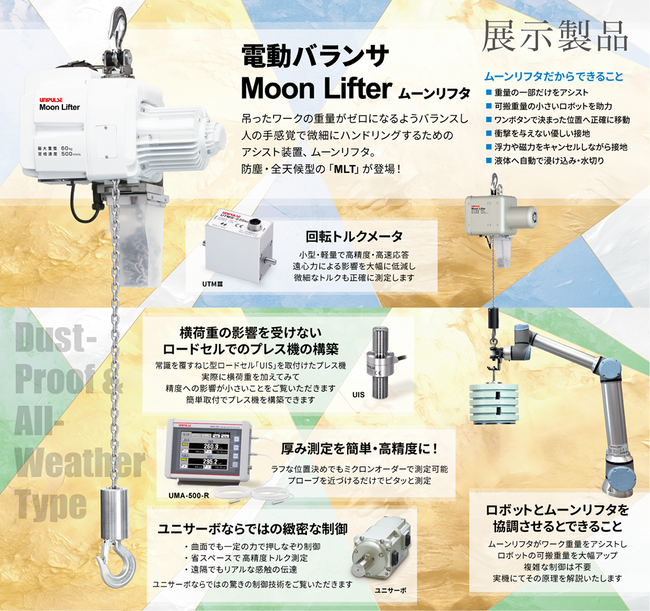 電動バランサ「ムーンリフタ」は、吊ったワークの重量をゼロにし軽い力で扱うことができる、吊下げ型のパワーアシスト装置です。