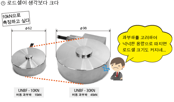 원래의 형태로 돌아오지 않으면 센서로 사용할 수 없기 때문에 로드셀은 여유 있는 용량을 선택해 주세요.