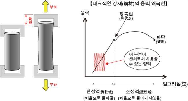 위 그림은 금속의 늘림(뒤틀림)과 힘의 관계를 나타낸 것입니다.