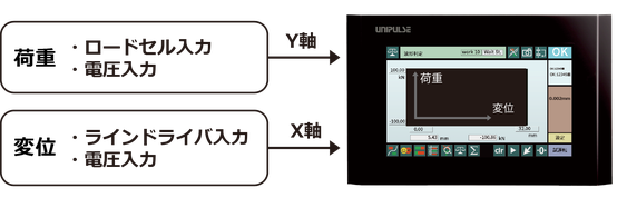 PFAを使用した試験機では2入力による波形表示&波形データの保存が行えます。