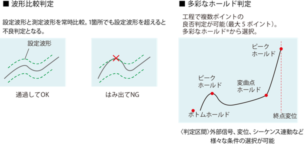 さらに、波形比較機能やホールド機能による良否判定も行えます。