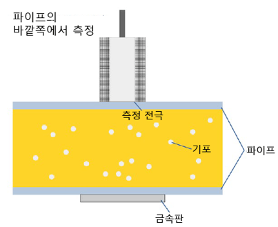액체와 기포의 유전율(誘電率) 차이를 이용하여 액체 내 기포율 측정