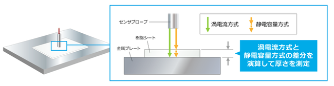 "コンデンサや電池の絶縁膜"、"樹脂シート"、"接触できない塗装面"の膜厚測定に最適