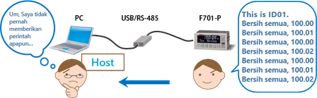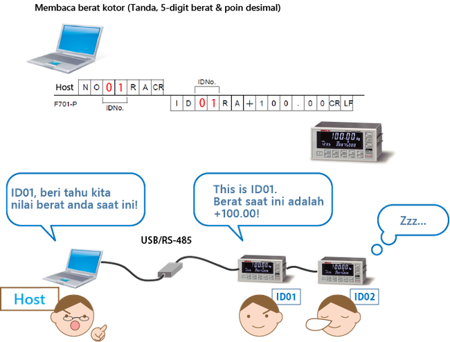 Dengan mengirimkan perintah ke ID yang ditentukan oleh host (di sisi PC), indikator yang sesuai mengirimkan kembali respons.