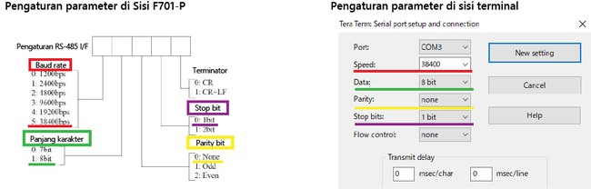Sementara itu ada beberapa mode komunikasi di F701-P, kami perkenalkan mode "Command" dan mode "Continuous". (Transmisi Kontinyu)