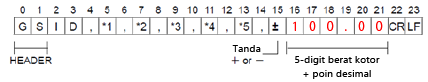 "+" mewakili tanda, dan "100,00" mewakili nilai berat kotor.