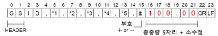 "+"는 "부호", "100.00"은 "현재 중량값"을 나타냅니다.