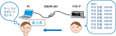 PC측(호스트)에서 지정한 ID에 대해서 명령하는 것으로 해당하는 지시계로부터 응답이 돌아옵니다.
