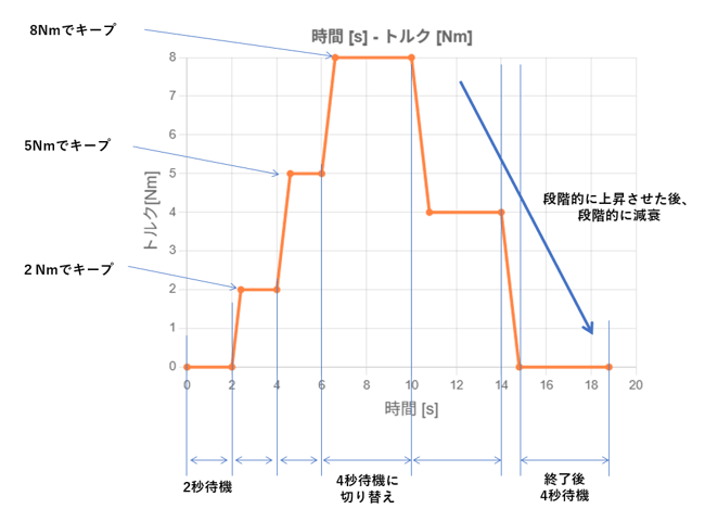 ・測定は下記のグラフの形で制御(トルクパターンは10まで設定可能)