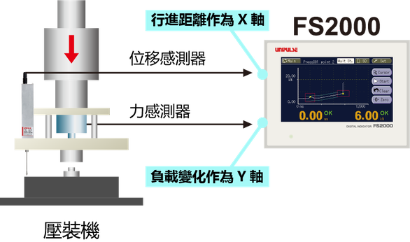 F381A、FS2000、PFA等測力儀表除了測量負載以外,還有連接位移感測器來檢測位移功能。