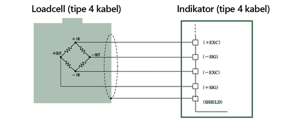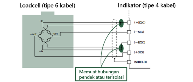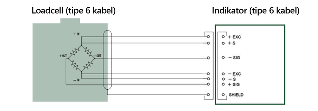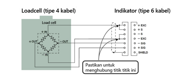 Untuk Load Cell serta penguat dan indikator dimana loadcell dihubungkan ada "tipe 4 kabel" dan "tipe 6 kabel". Jika tidak disambungkan dengan benar, hal itu tidak hanya dapat menyebabkan pengukuran yang tidak akurat, tetapi juga dapat berpengaruh oleh suhu atau panjang kabel.